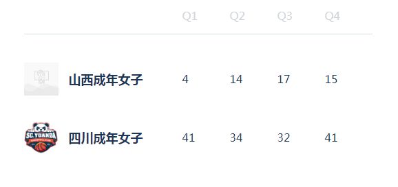 至于后三节比赛,四川全运女篮均是单节轰下30+得分,并且末节再度轰下40+得分,且后三节均是限制山西全运女篮单节得分不足20分。四川全运女篮第二节34-14净胜20分,上半场已经扩大75-18领先57分巨大优势。